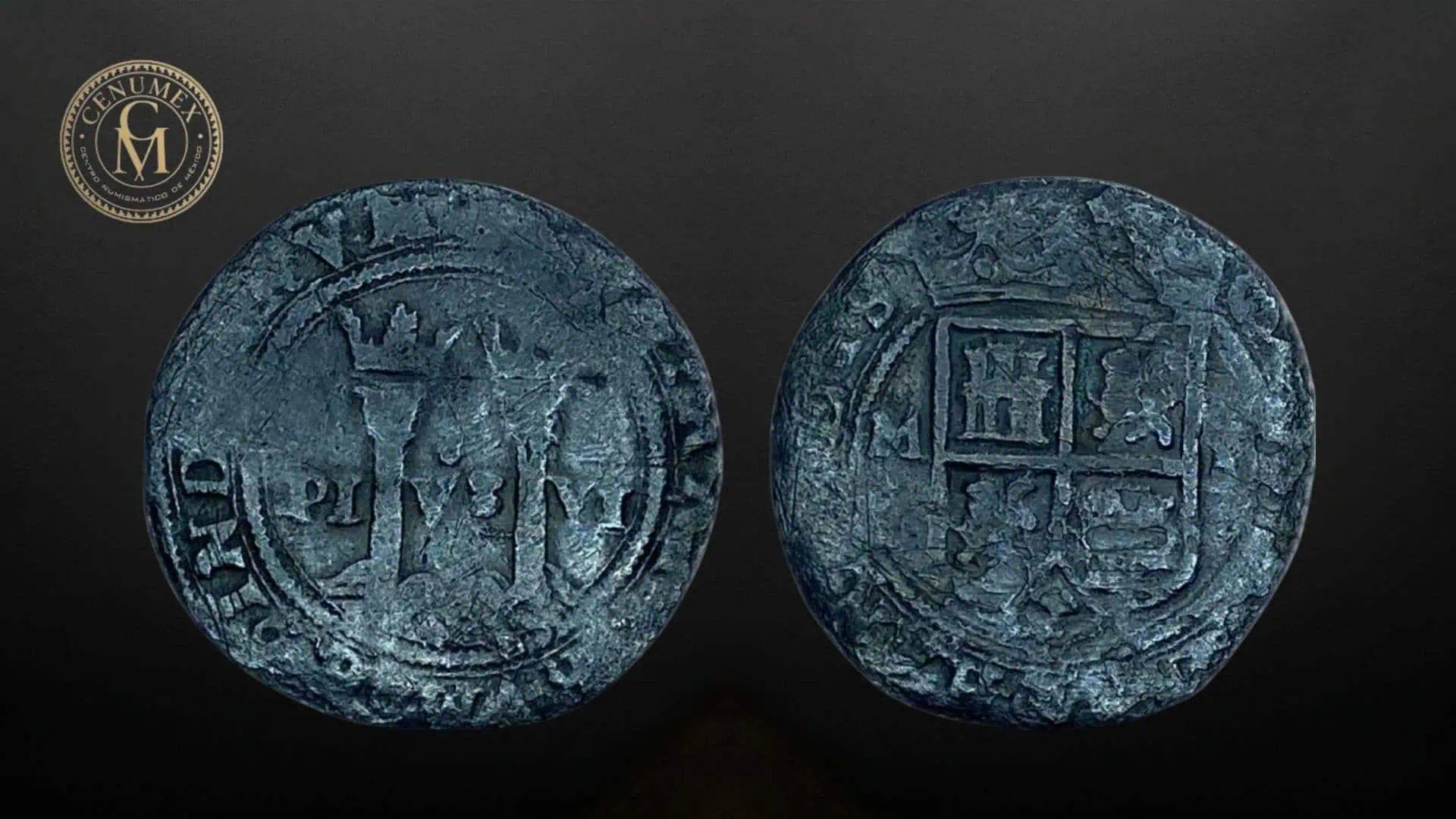 Es curioso que, en estas primeras monedas, debajo de las columnas no se colocara agua (como si se hizo en monedas posteriores). Por este motivo se les conoce como “sin agua” a esta primera serie hecha entre 1535 y 1542. Otro elemento importante es la tipografía gótica y el escudo de Castilla, León y Granada al frente. Sobre este escudo luce, además, una corona de España. Cabe agregar que había diferentes denominaciones para estas monedas de plata: ¼, ½, 1, 2 y 3 reales. Estas denominaciones se inscribían también con puntos para el correcto entendimiento de los habitantes nativos.