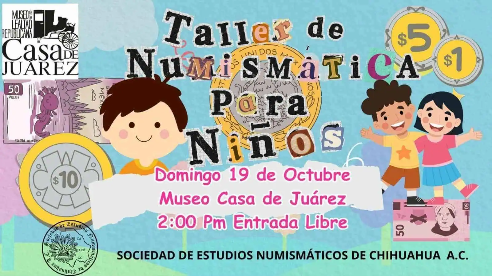 Taller de Numismática para Niños y Niñas con motivo del Bazar Numismático de Chihuahua.
