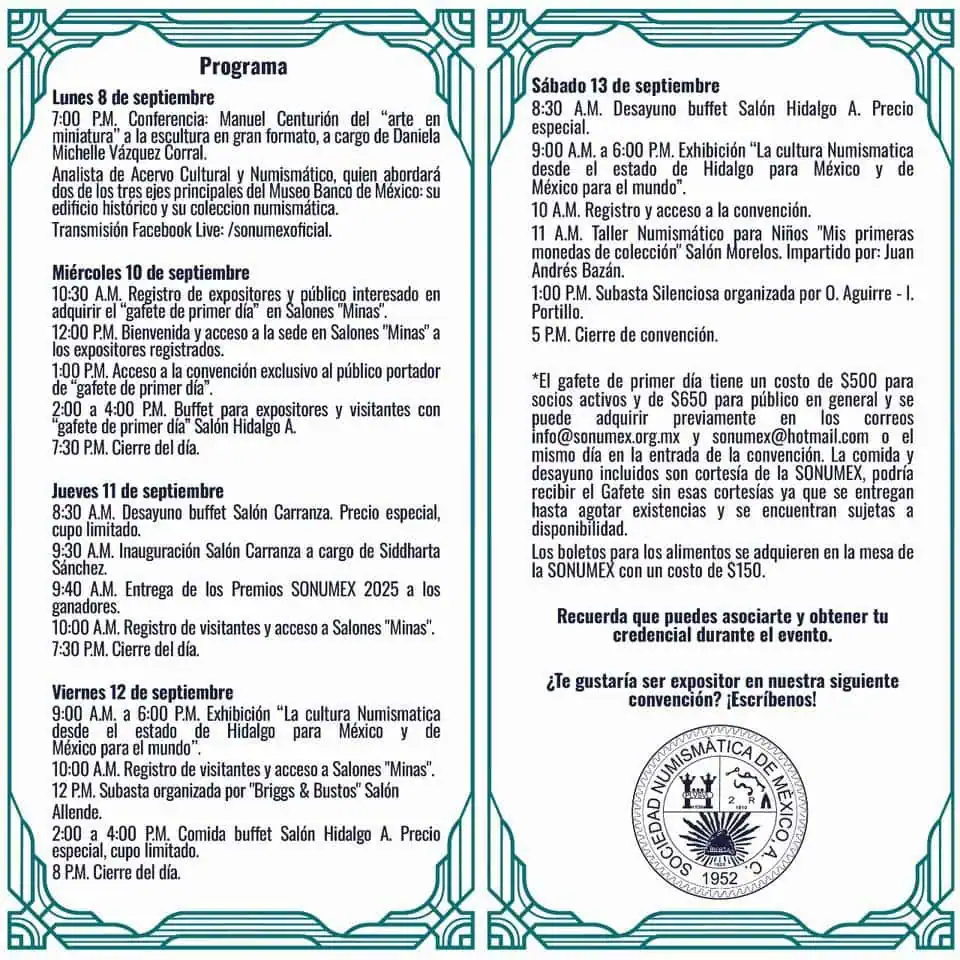 La Sociedad Numismática de México invita a su LXXVIII Convención Numismática Internacional, donde se conmemoran los 100 años del Banco Único de Emisión (1925–2025).