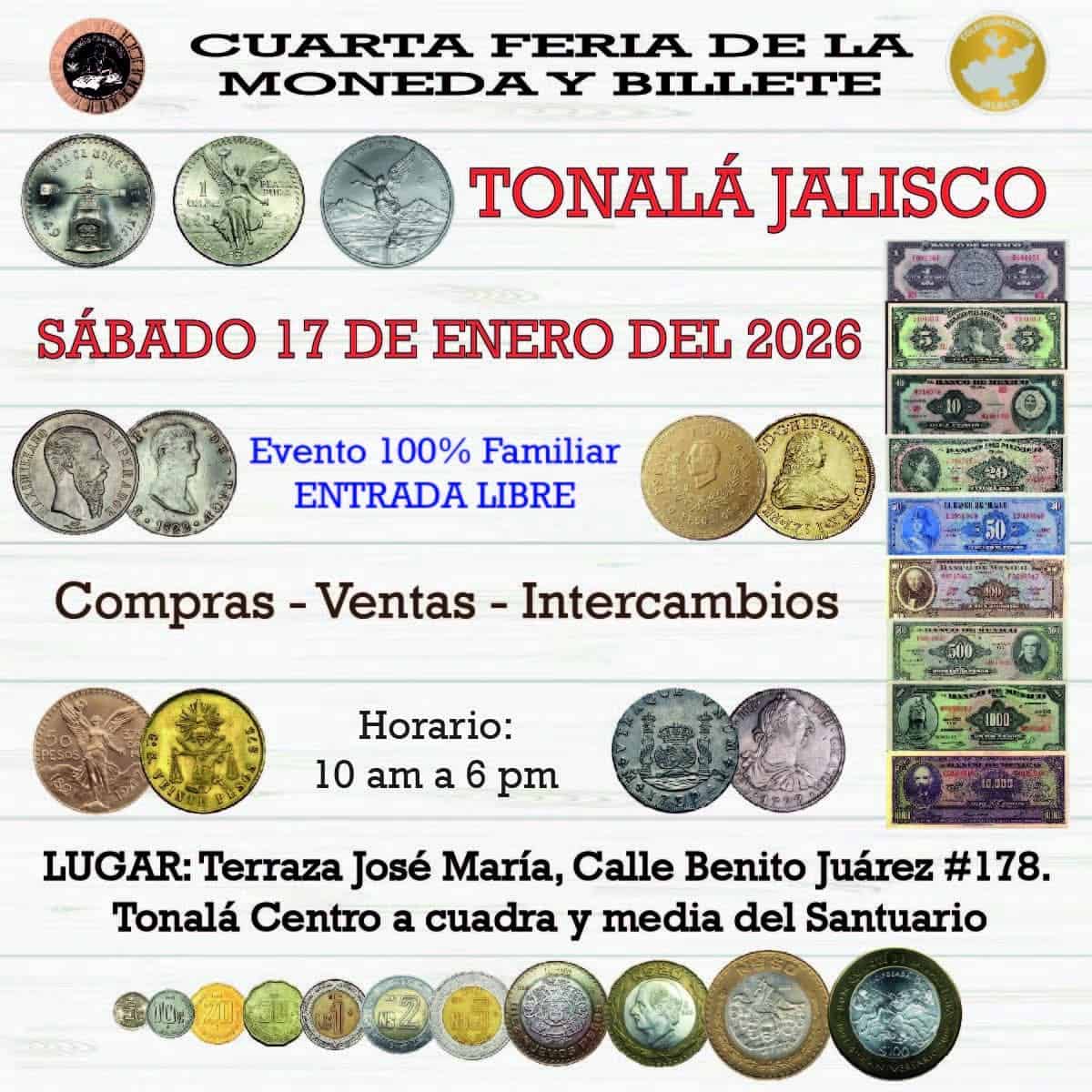 Terraza José María Calle Benito Juárez #178, Tonalá Centro, Tonalá, Jalisco, MexicoCompra, venta e intercambio de monedas y billetes. Entrada gratuita.