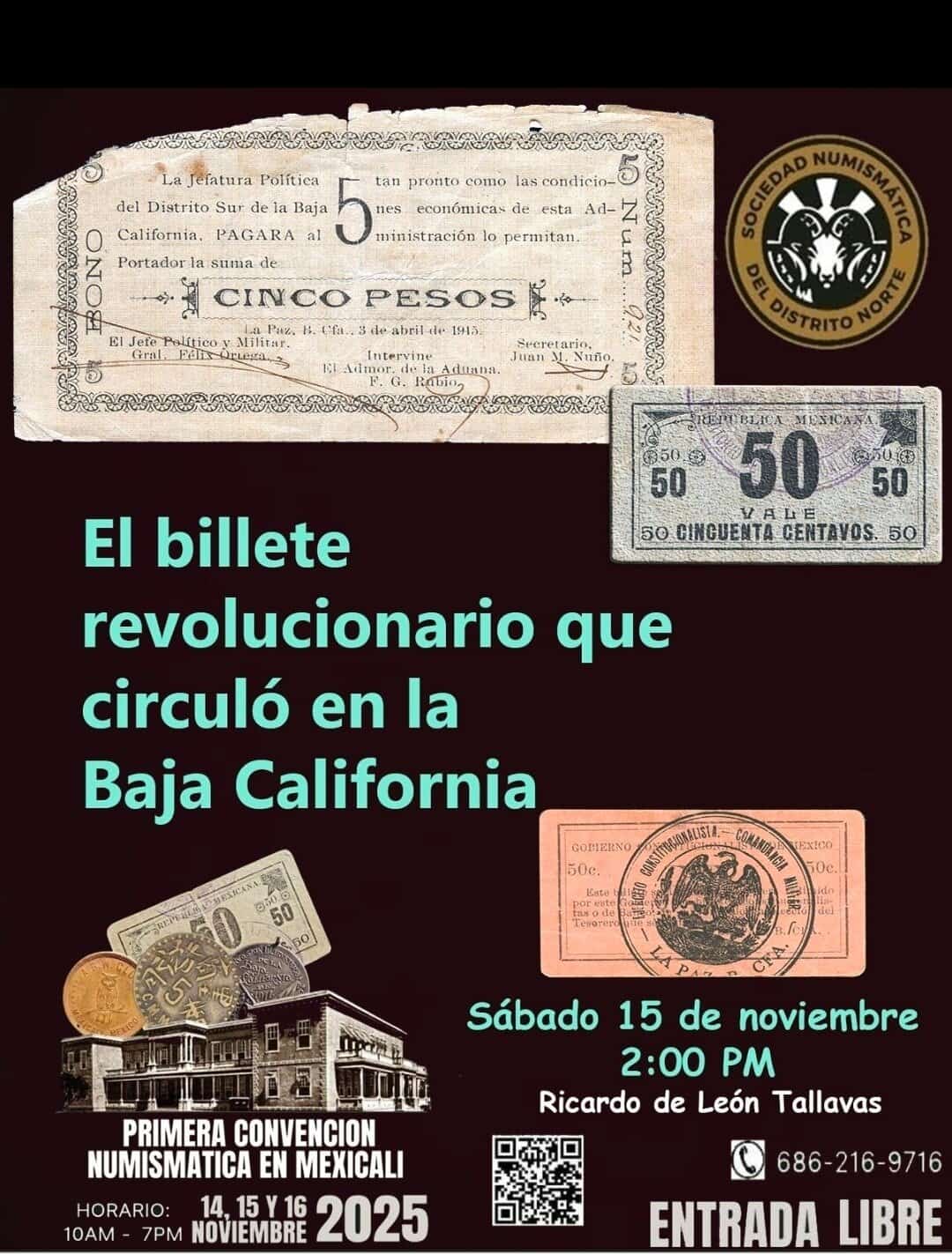 Sala de Exhibición del CEDHUS, Universidad CETYS (Campus Mexicali) Calzada CETYS, s/n. Colonia Rivera, Mexicali, Baja California del Norte, MexicoExhibición "Monedas y Billetes de México y el Mundo" en el marco de la Primera Convención Numismática de Mexicali.