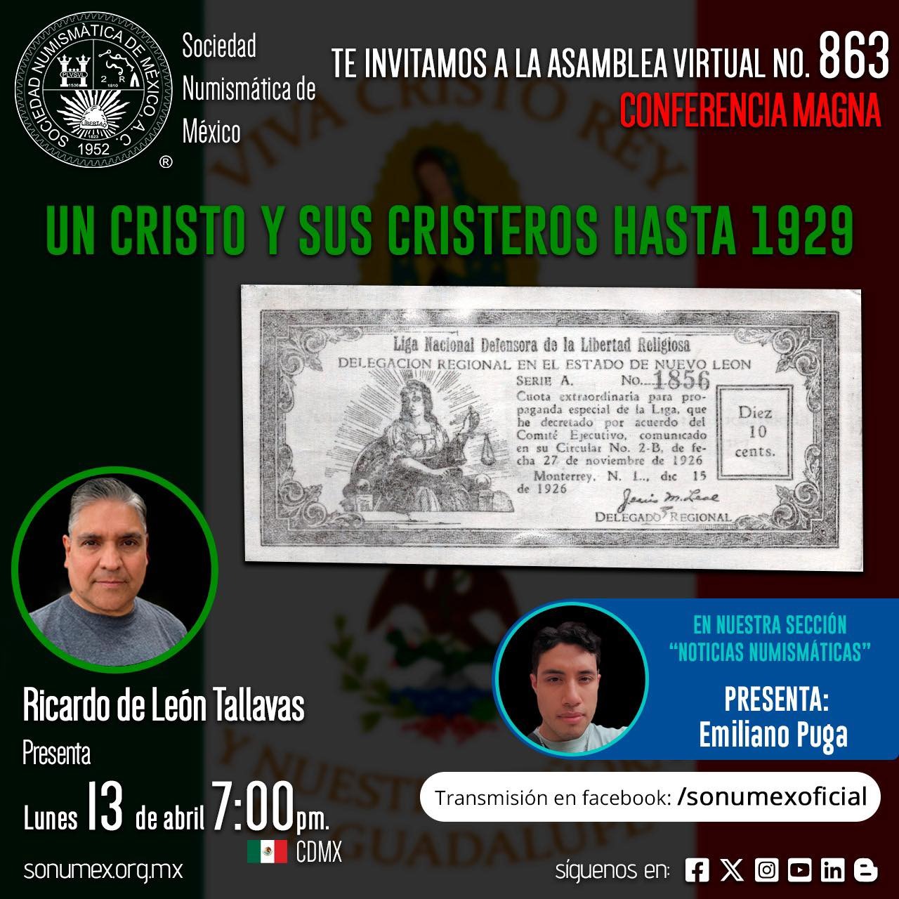 La Sociedad Numismática de México invita a la conferencia "Un Cristo y sus Cristeros hasta 1929", a cargo de Ricardo de León Tallavas, como parte de su Asambles Virtual No. […]