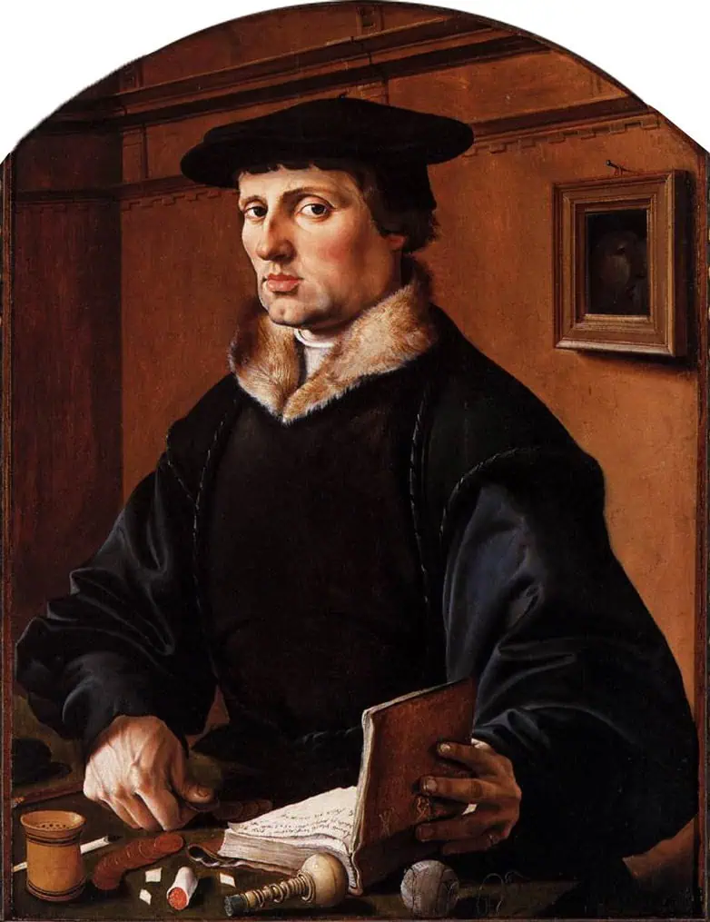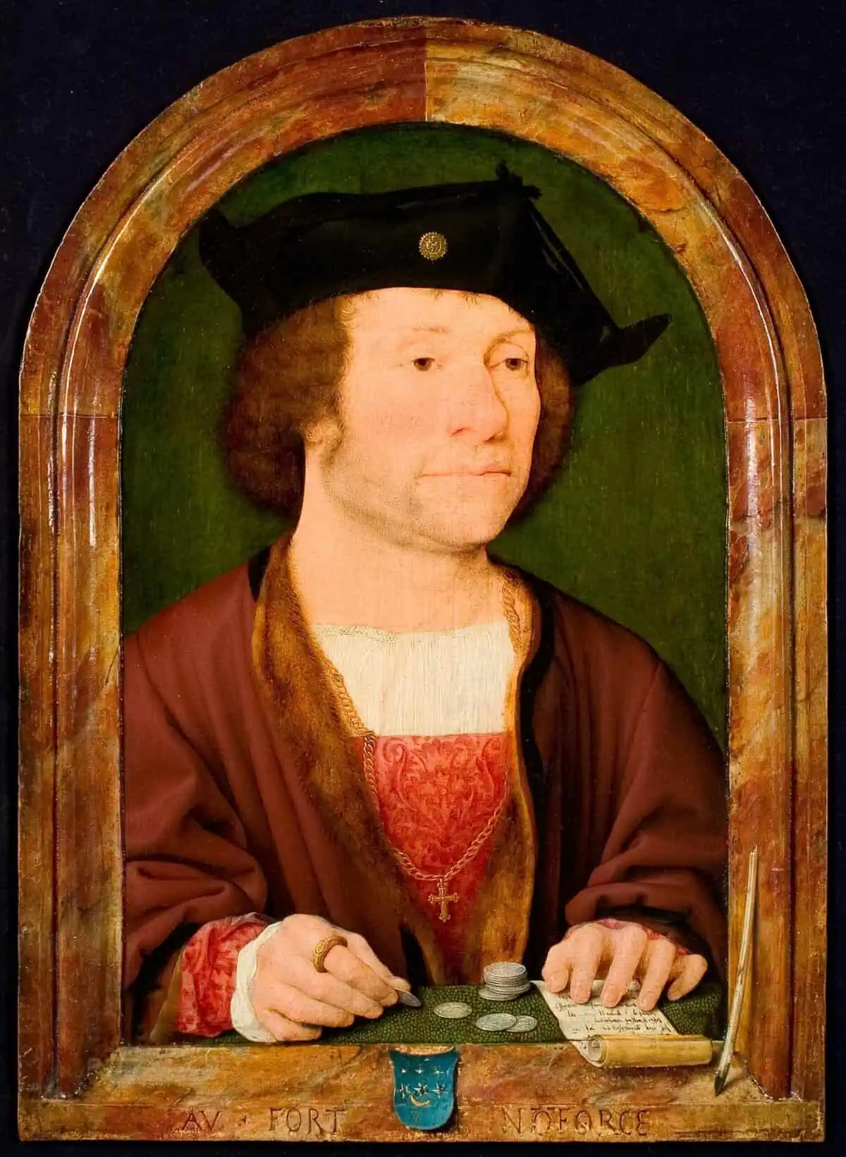 En los otros casos, la moneda es utilizada para describir la profesión de comerciante de Pieter Bicker Gerritz, retratado por Maarten van Heemskerck, y Anthonis van Hilten, pintado por Joos van Cleve. Las monedas aparecen despilfarradas en los escritorios. Todo sugiere que en estos dos casos los comerciantes están haciendo listas y contando dinero, con el fin de pagar deudas. En el caso de Lais de Corinto, el gran Hans Holbein la retrata con un bonche de monedas y la mano extendida. En este caso, el retrato quiere indicar el oficio de la mujer, que es la prostitución, por la que cobraba un alto precio en la antigua Grecia. De hecho, se dice que ella puso de moda la palabra “vivir como corintio” aludiendo a su vida llena de opulencias y excesos.