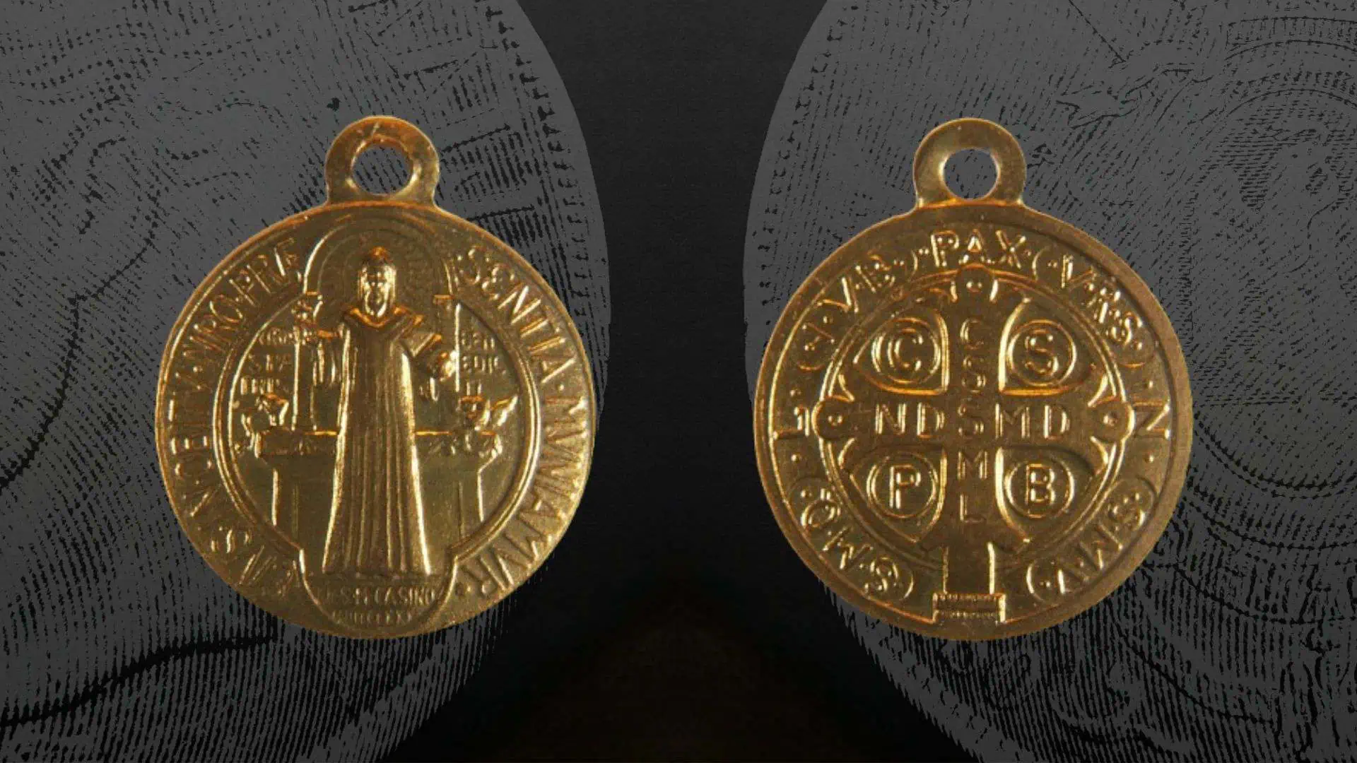 Sin embargo, las más fascinantes son, en mi opinión, las medallas sacramentales, esas que cuidan y dan protección espiritual a los creyentes. La medalla de San Benito, una de las más conocidas, esconde unos muy particulares simbolismos y frases. Como su nombre indica, está dedicada a San Benito de Nursia, uno de los fundadores del monacato occidental. También, San Benito es el patrón de la buena muerte, razón por la cual la medalla incluye la inscripción en latín: Eius in obitu nostro praesentia muniamur (“A la hora de nuestra muerte seamos protegidos por su presencia”).