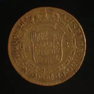8 Escudos Carlos IV 1805, Ceca Santa Fe Nuevo Reino, Ensayador JJ.