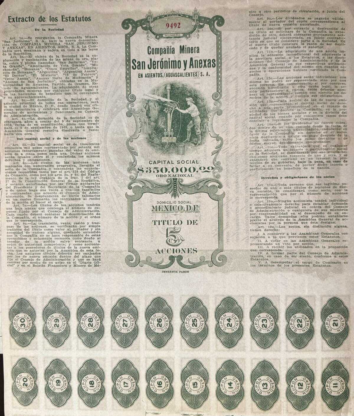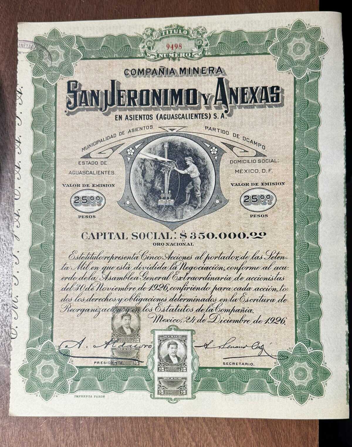 Acción Minera 25 pesos San Jeronimo y Anexas