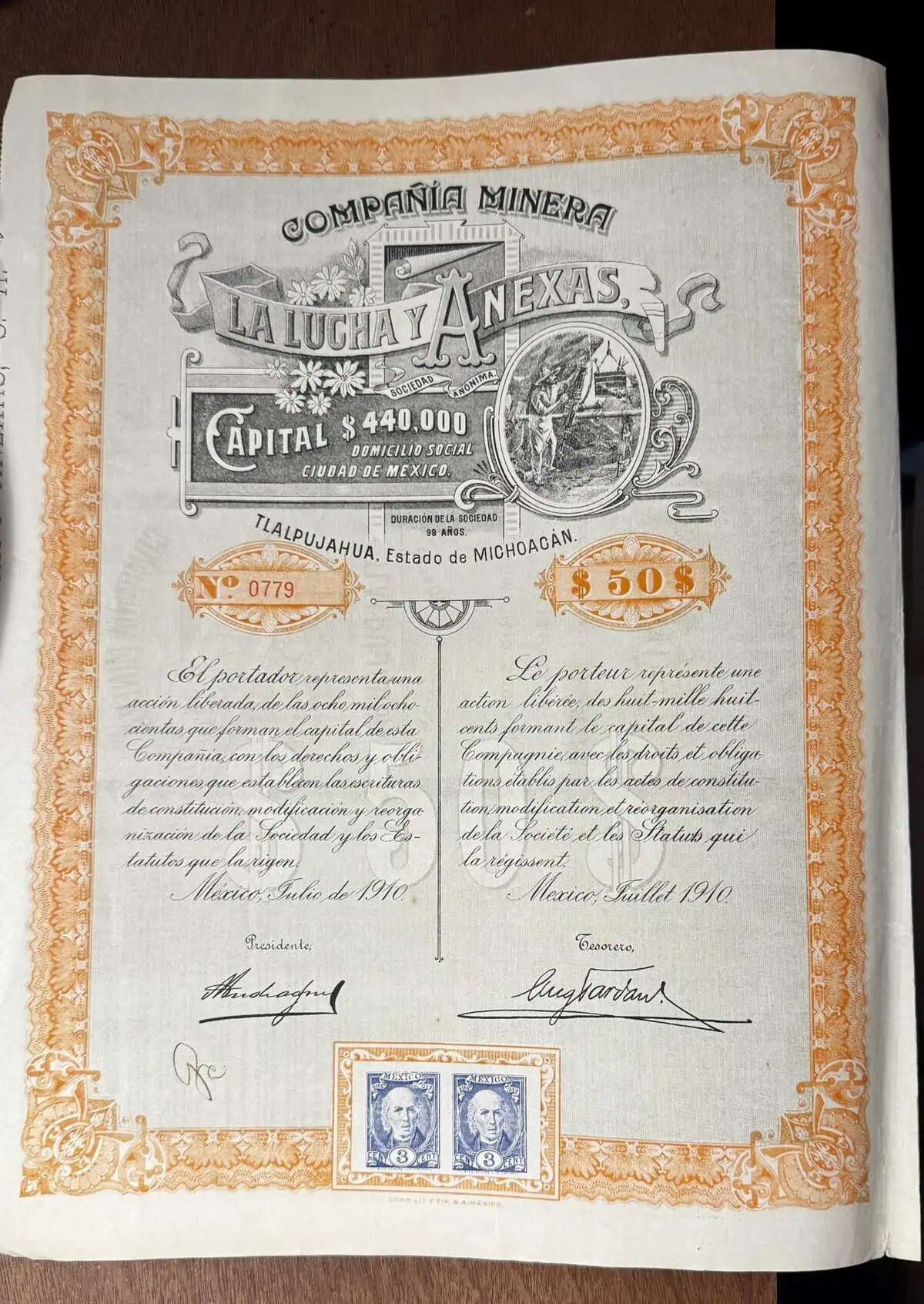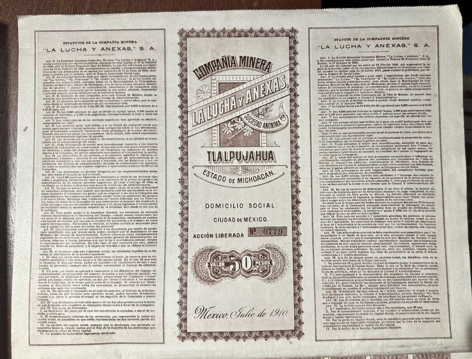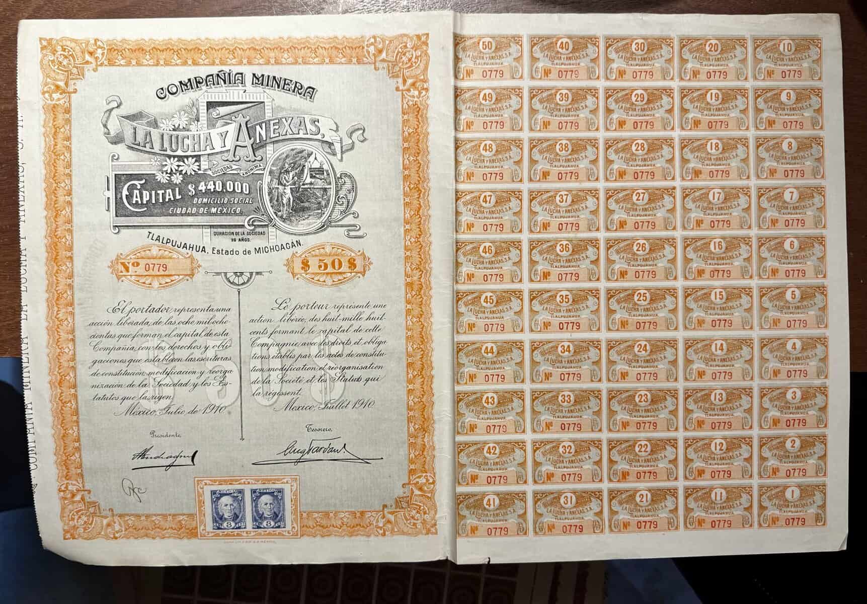 Acción Minera 50 pesos La Lucha y Anexas