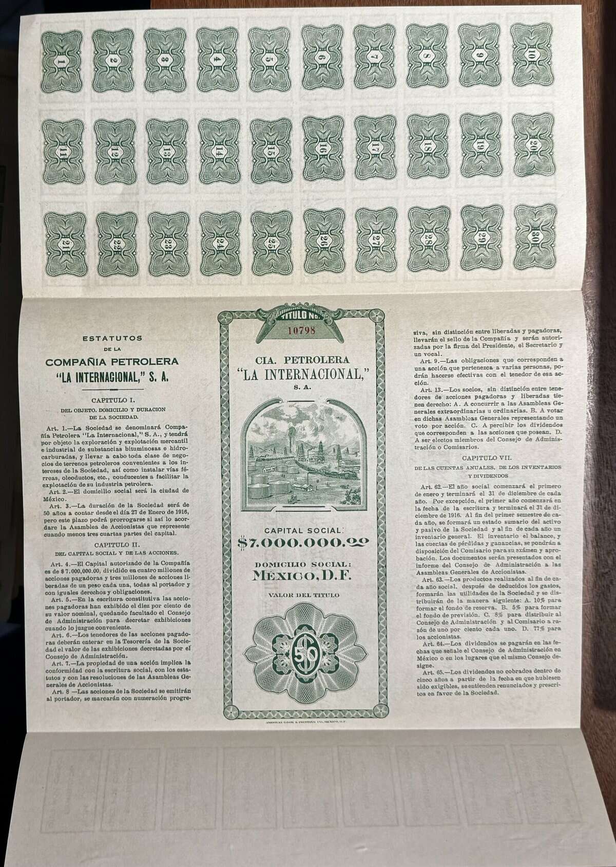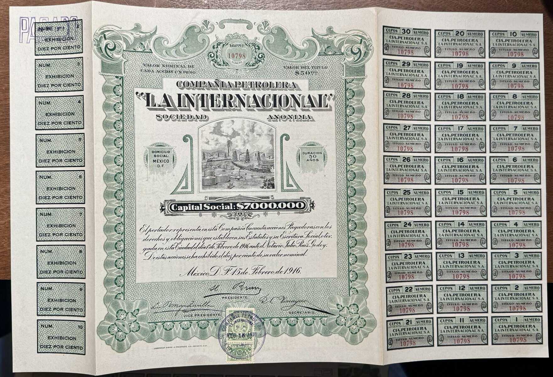 Acción 20 pesos Márgenes del Pánuco Veracruz 1917