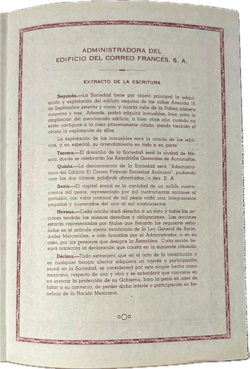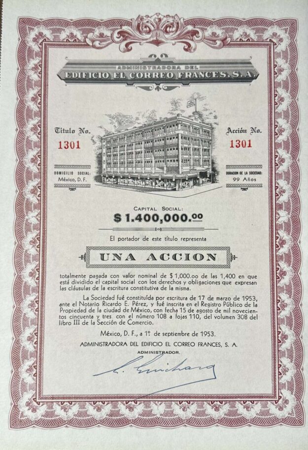 Sé el primero en valorar “México 1 Accion 1000 Pesos Edificio El Correo Frances 1953”