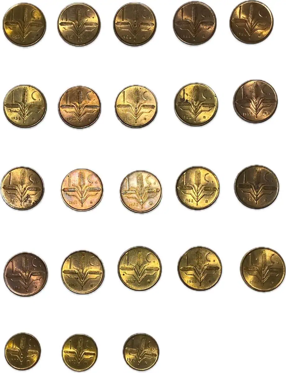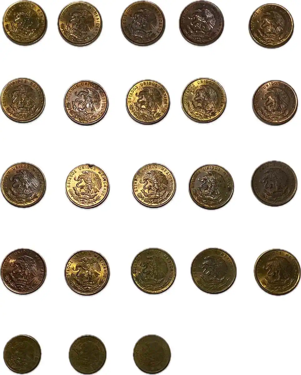Mexico. 1 centavo espiga. Colección completa desde el año 1950 hasta 1973. 23 monedas en total. Muy buena condición en general.