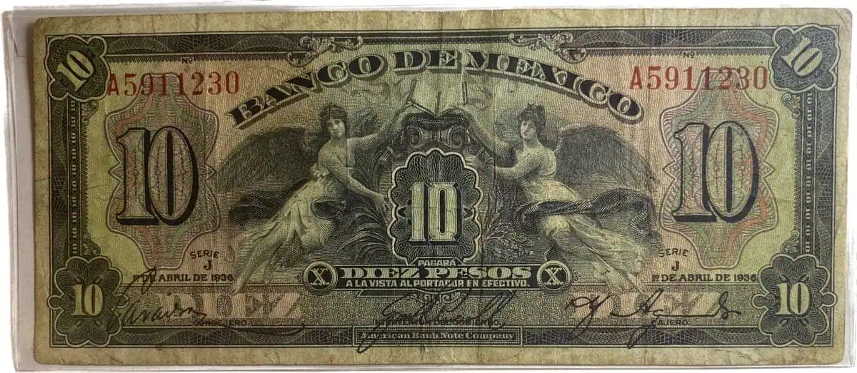 Mexico. 10 pesos.1936. billete de Banco de Mexico. Limitado a un artículo por cliente por compra