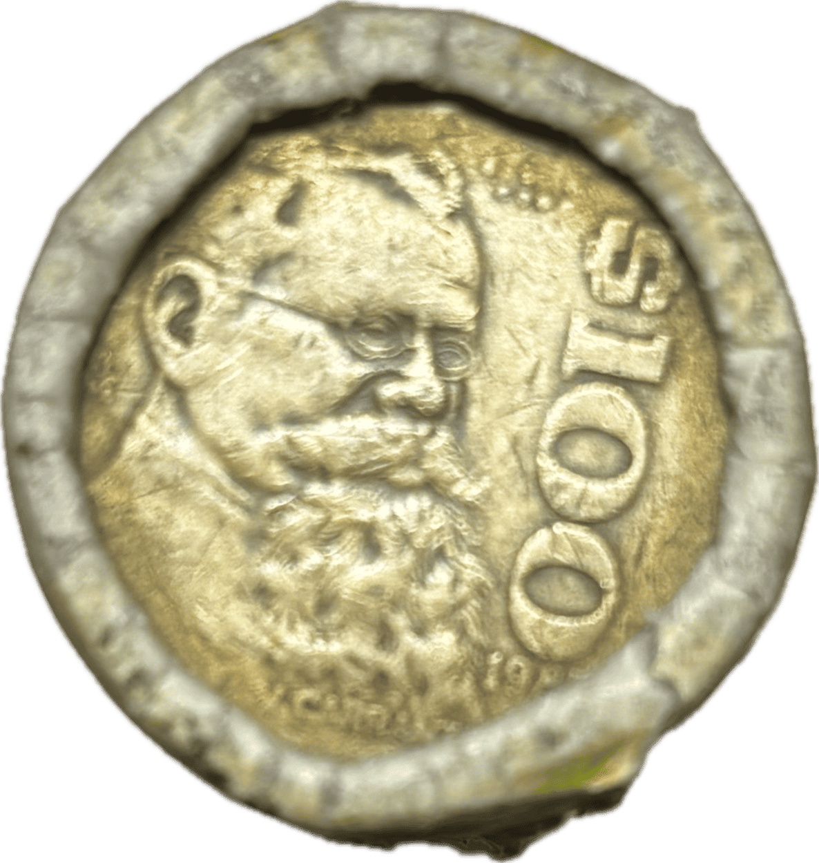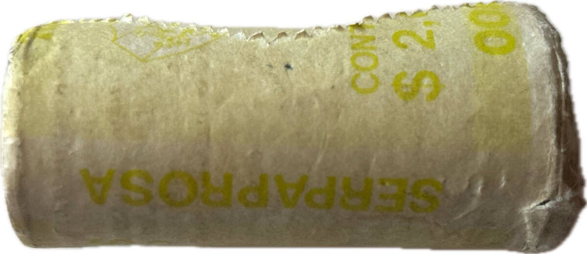 Rollo de banco sin abrir original de monedas de $100 pesos 1985. 20 monedas en total. el rollo de papel muestra algunos daños