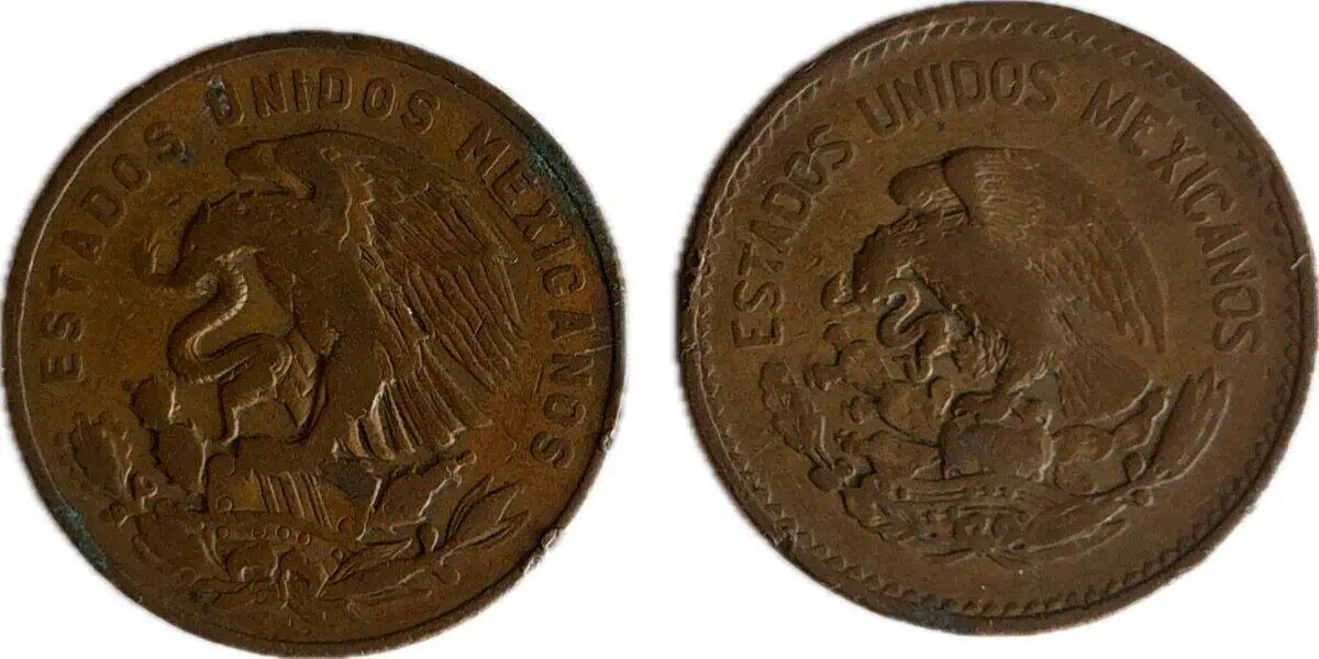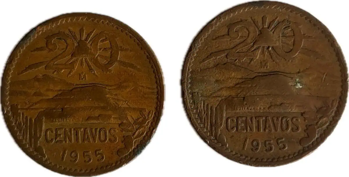 Mexico. 20 centavos. 1955. Conjunto de dos monedas. Sin brillo con desgaste en ambos lados. Águila grande y águila chica.
