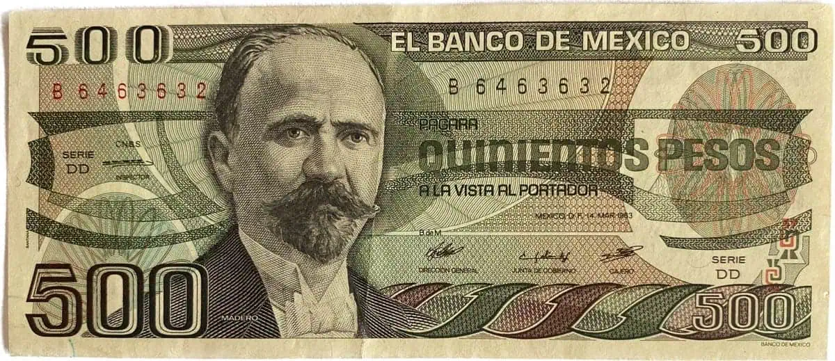 Conjunto de dos billetes de $500, un billete con sello de agua y el otro sin sello de agua. El billete con sello de agua esta una condición general buena, el billete sin sello de agua esta en condición sin circular.