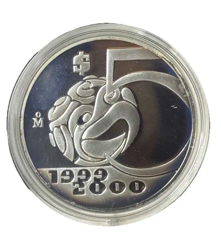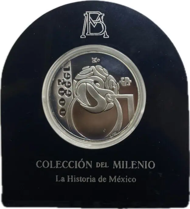Medalla de la colección del milenio de Banco de México. 5 pesos 1999 2000. Folio 26939. Plata