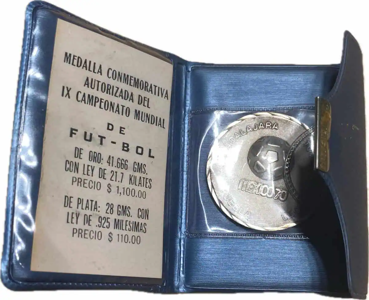 Medalla del mundial Mexico 1970. En estuche original. Plat 0,925. 28 gramos.