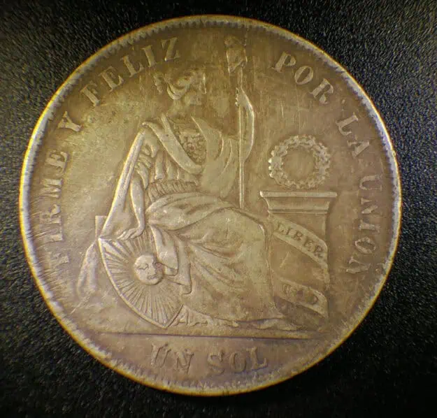Un Sol Peru 1870 KM# 196.3 Plata .900