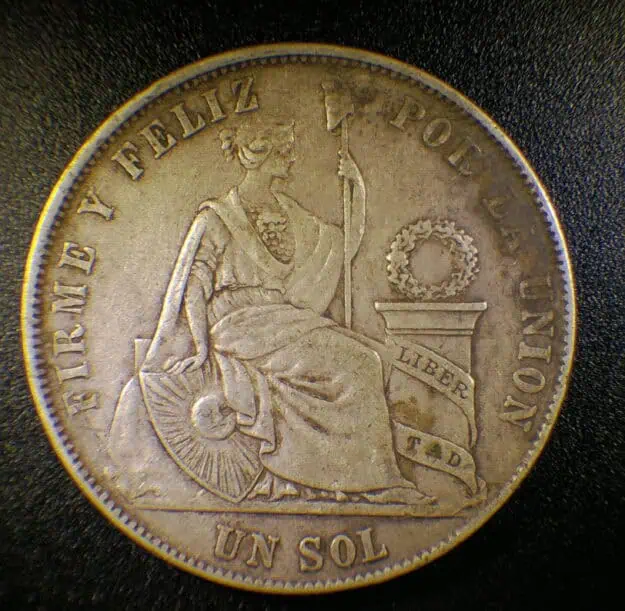 Un Sol Peru 1869 KM# 196.3 Plata .900