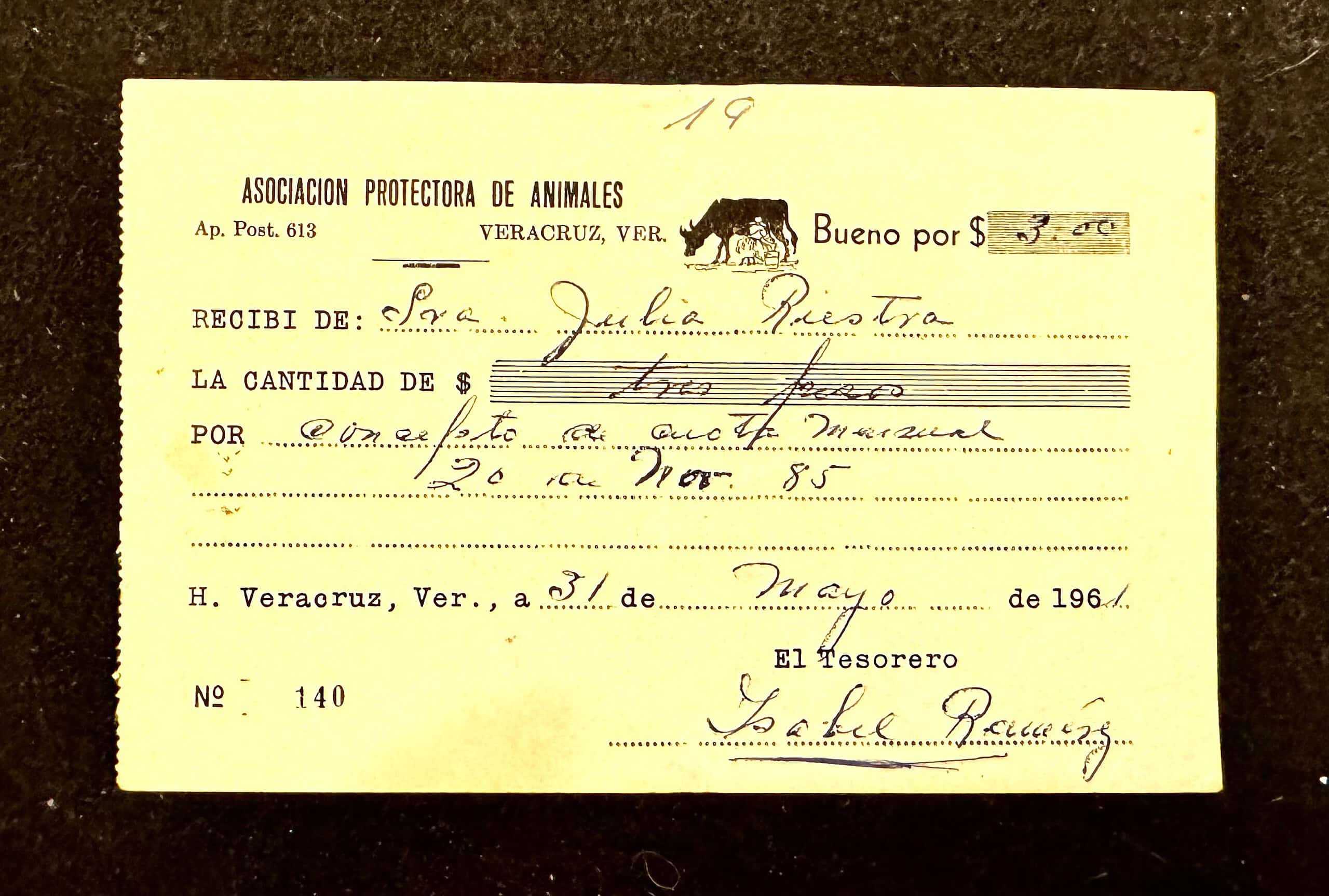 Veracruz Recibo 3 pesos 1961