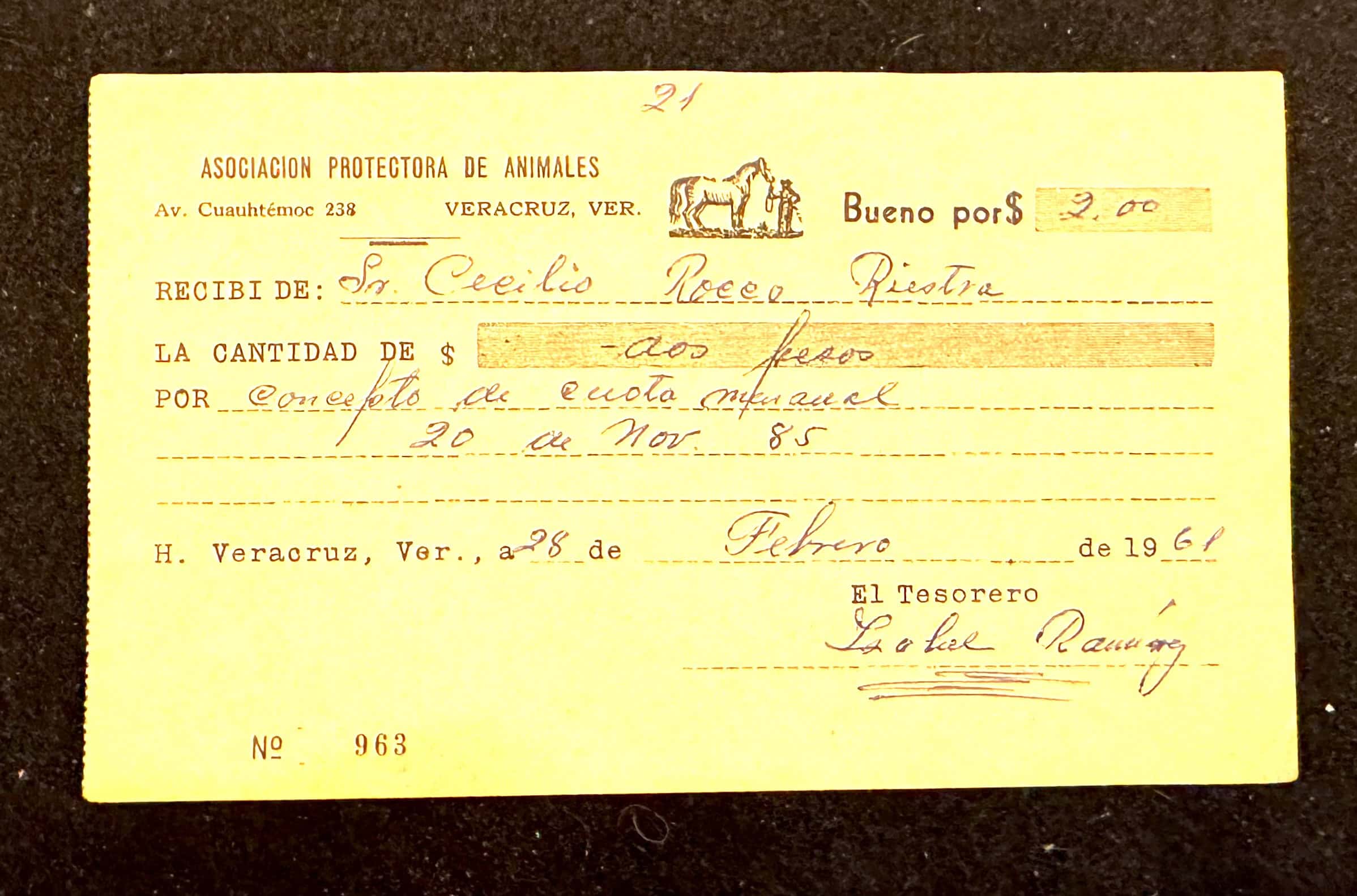 Veracruz Recibo 2 pesos 1961